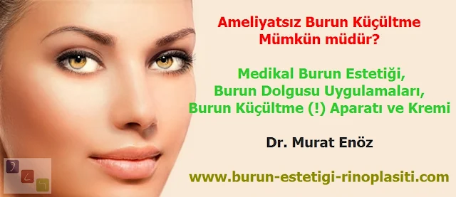 Burun estetik uygulamalarına yoğun talebin etkisi kanıtlanmamış birçok estetik dışı yöntemin tanımlanmasına yol açmıştır. Burun hacminde azalma ve burun küçültülmesi amacıyla görebileceğiniz bitkisel ürün, masaj kremi ya da benzeri ürüne inanmamanızı öneririm.Burun Dolgusu, Kamuflaj Etkisi İle Burunu Geçici Olarak Küçük Gösterebilir!